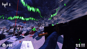 Attack on Wendigo is an ultra-violent arena FPS in which you have to slaughter titanic fire-breathing demons. You were dropped off by a helicopter in a northern ghost town. The helicopter will serve you as a dispenser of guns and drugs. Despite the approaching blizzard, you have no right to retreat until the last Wendigo is dead. Kill or be killed!